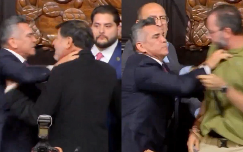 A video circulating online shows him storming toward Senate President Gerardo Fernández Noroña of the ruling Morena party and grabbing him by the arm.