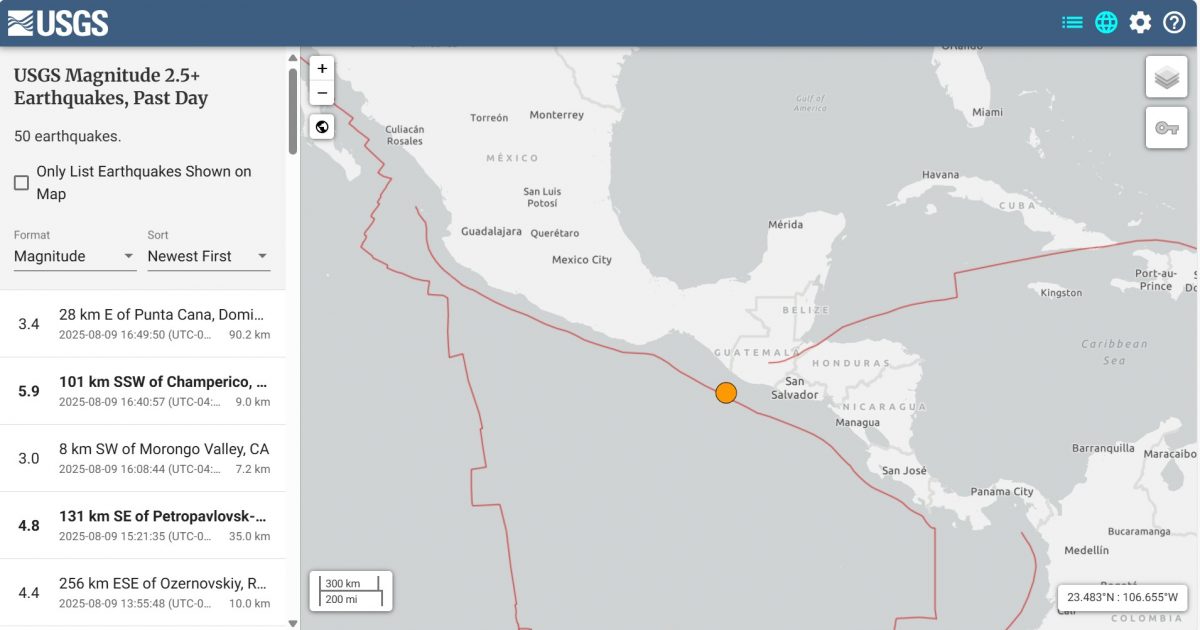 A 5.9 magnitude earthquake struck off the coast of Guatemala on Saturday, the United States Geological Survey (USGS) reported.